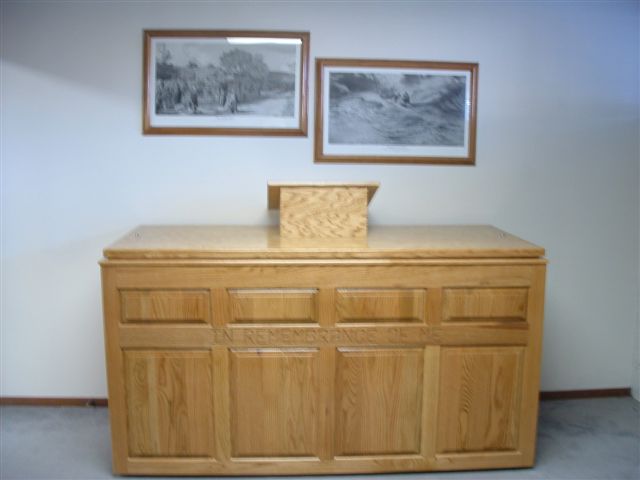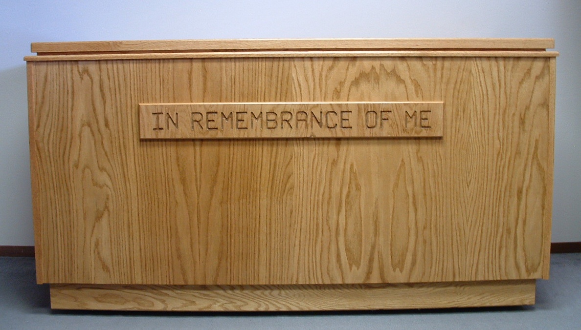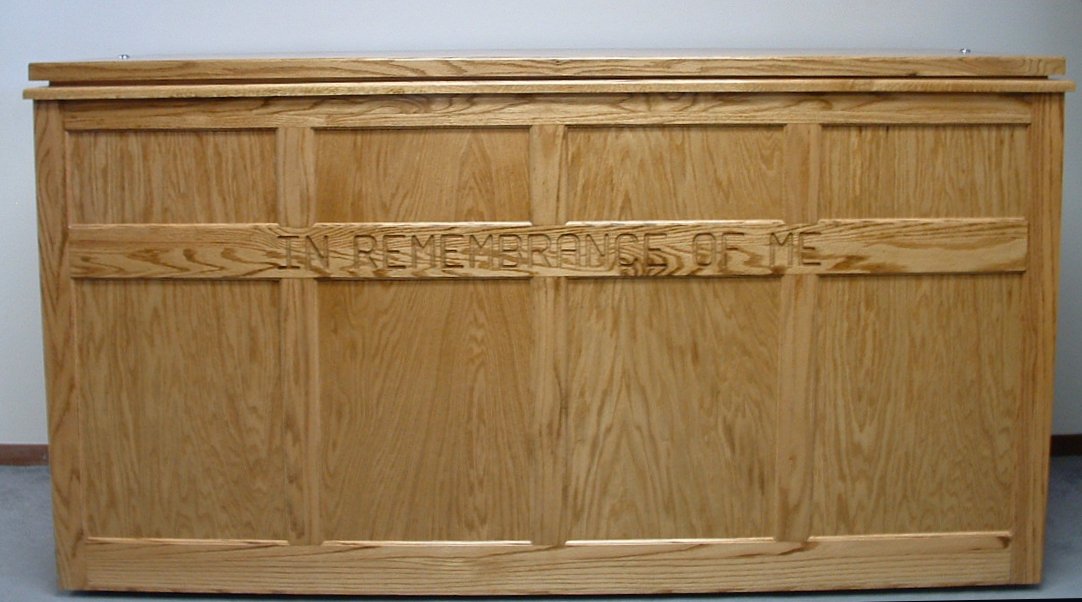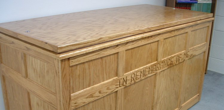 Each baptistry is custom-built to your specifications requiring a three- to six-week production schedule. Shipping is by commercial truck line and usually takes two to five days. Two inscriptions are available ‒ IN REMEMBRANCE OF ME or REPENT AND BE BAPTIZED ‒ or you can select no inscription. You also can select from ARM’s most popular medium oak finish or some 30 different stains ‒ ranging from clear to black ‒available from Sherwin Williams. Or you can send in a stain sample or brochure from your local paint store for us to match.